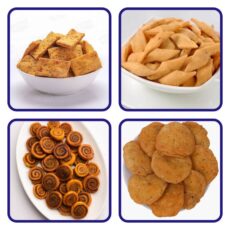 Bhakarvadi, Saloni, Methi Biscuit & Mathari |Tea Time Combo Pack (200g x 4) | Yana Namkeen
